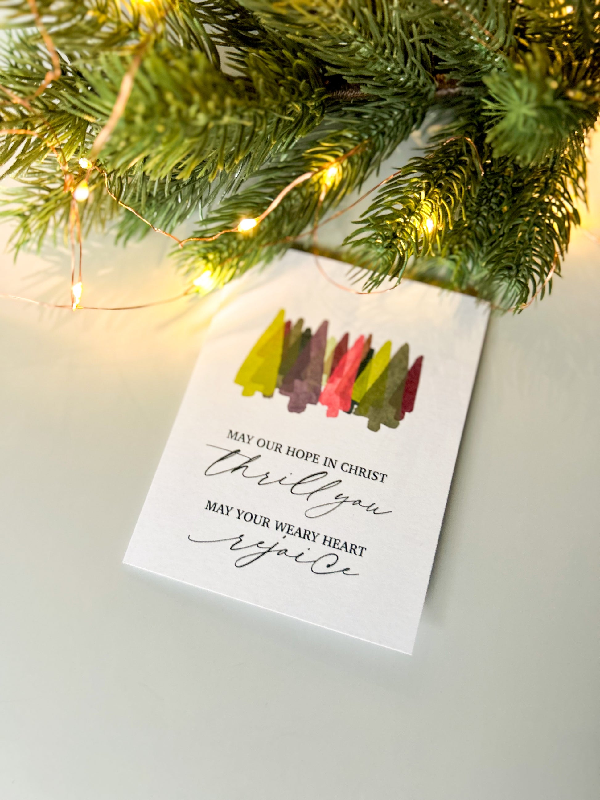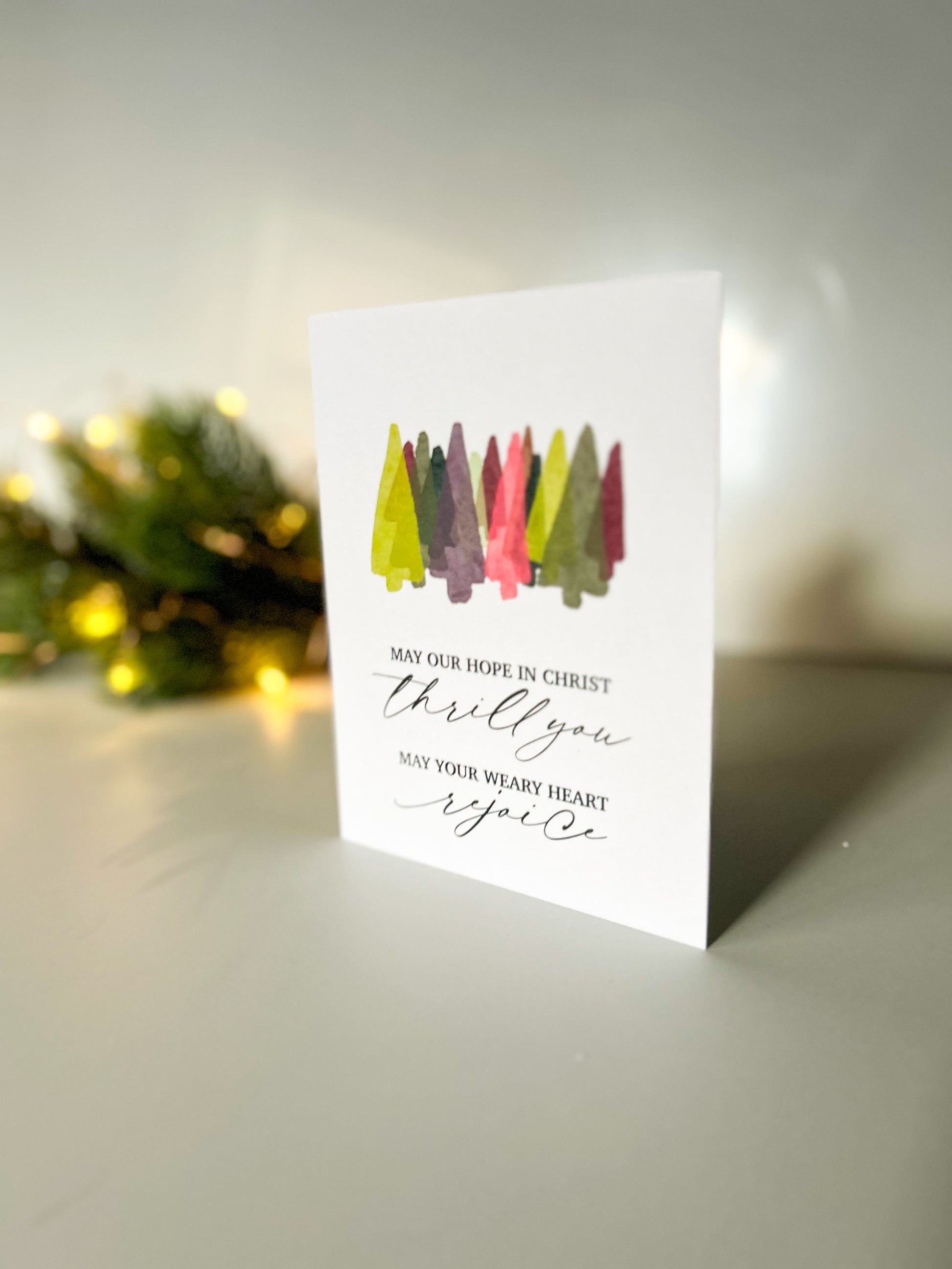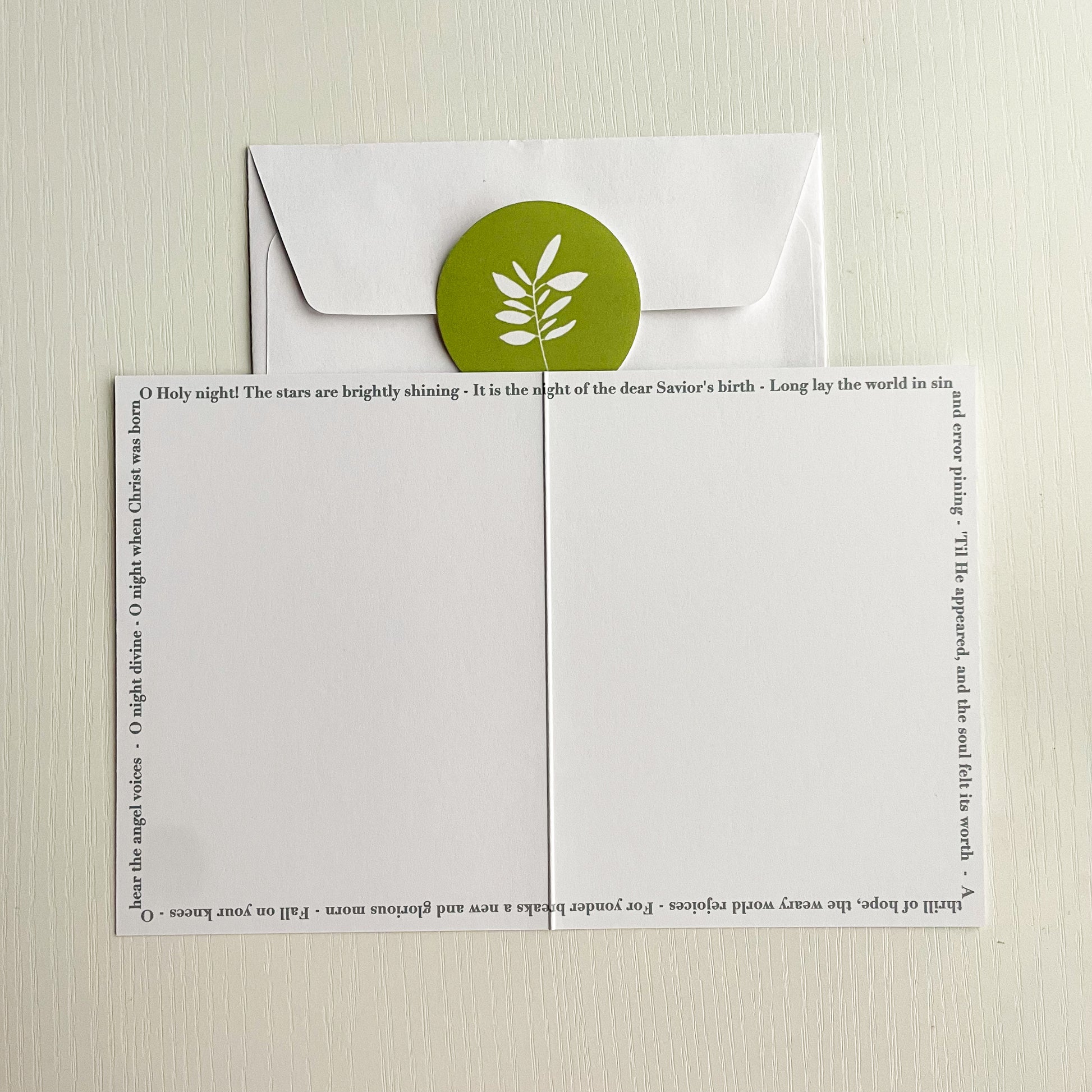 Lyrics to "O Holy Night" create a border on the inside of the card.