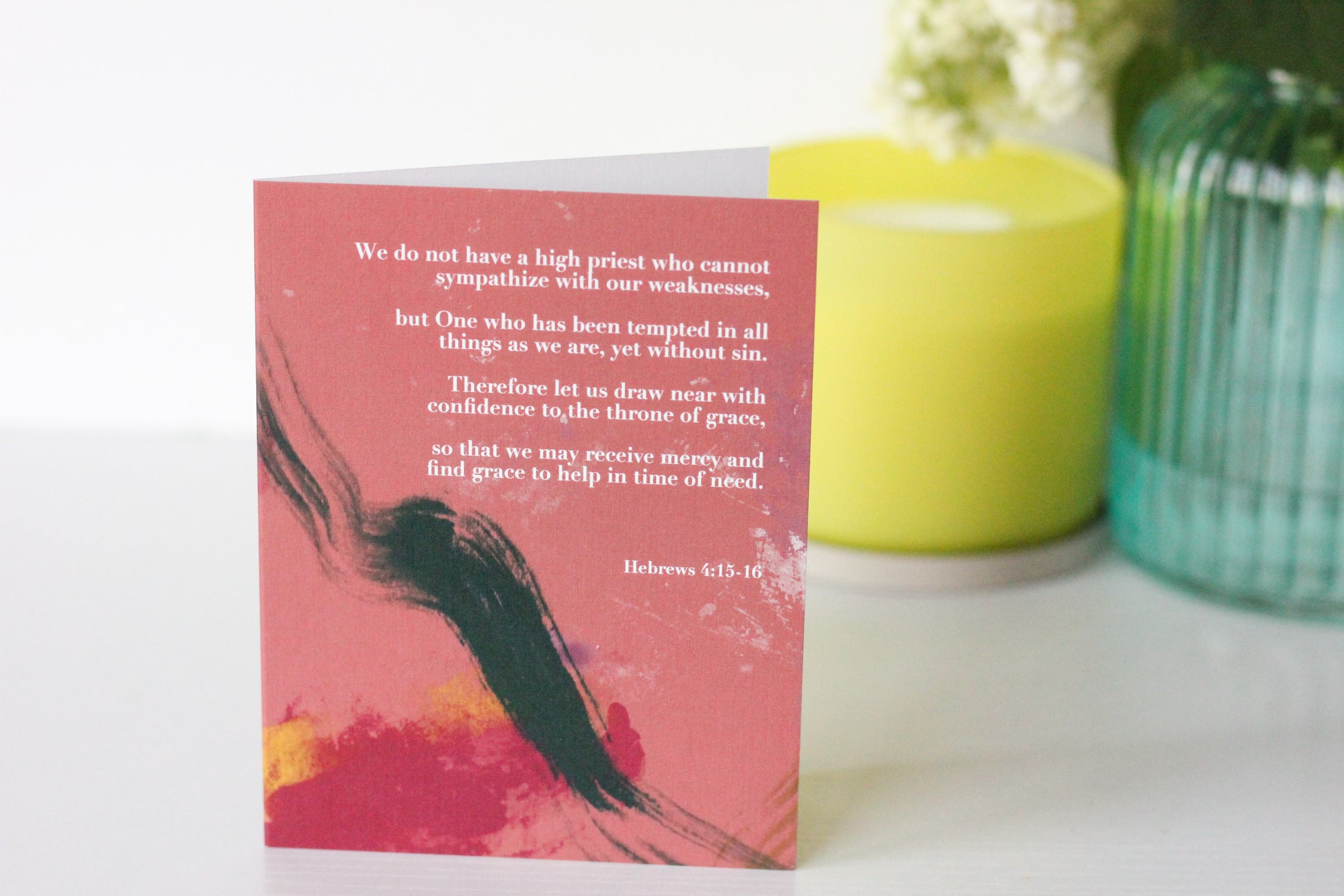 This card, with its colorful and complex background, allows the Bible verse to pop, which admonishes and exhorts us to turn to God to be strengthened.