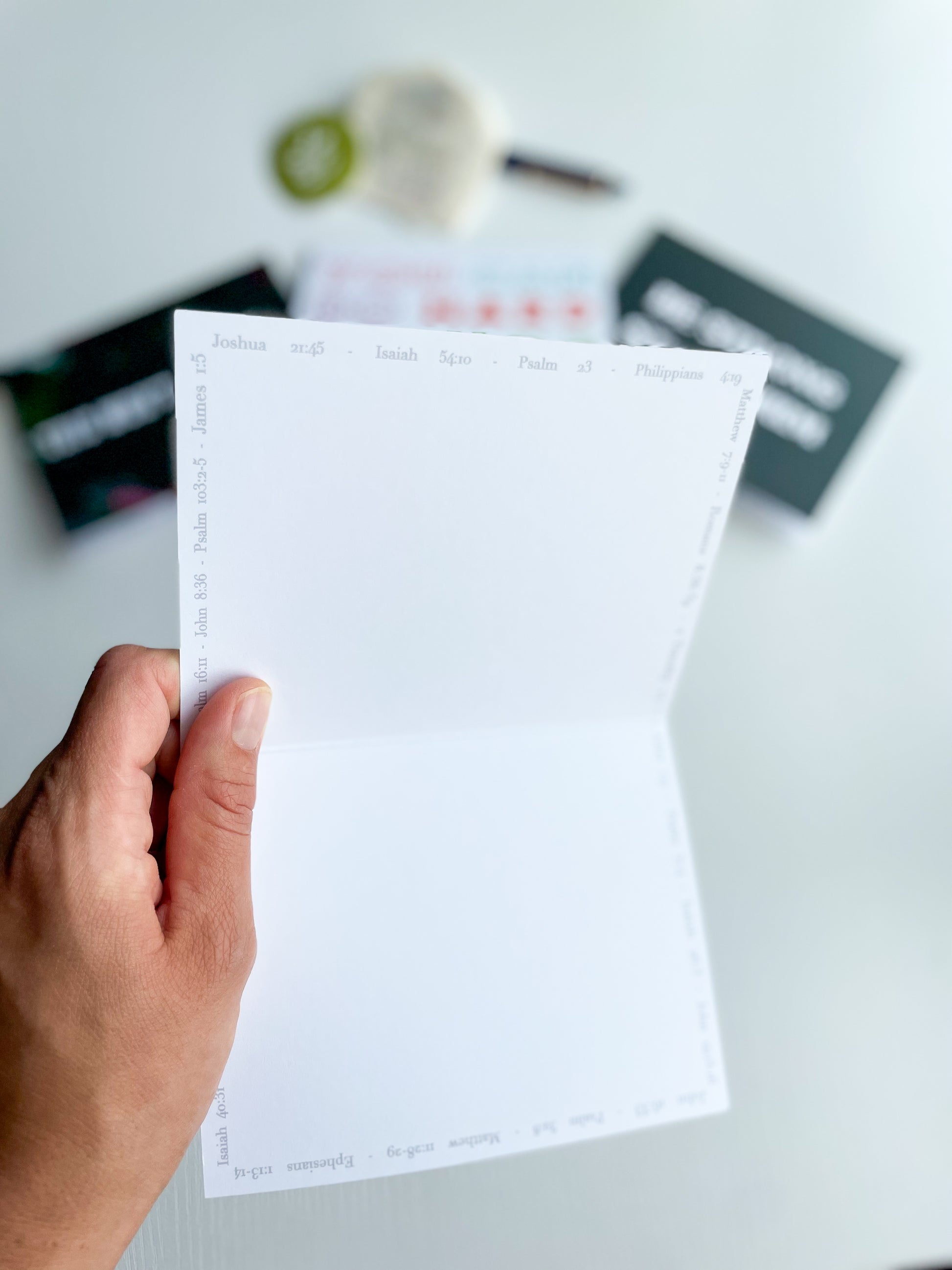 This 5.5 x 4.25 inch card is printed on thick, white card stock. It also comes with a straight flap, matching envelope and envelope sticker.
