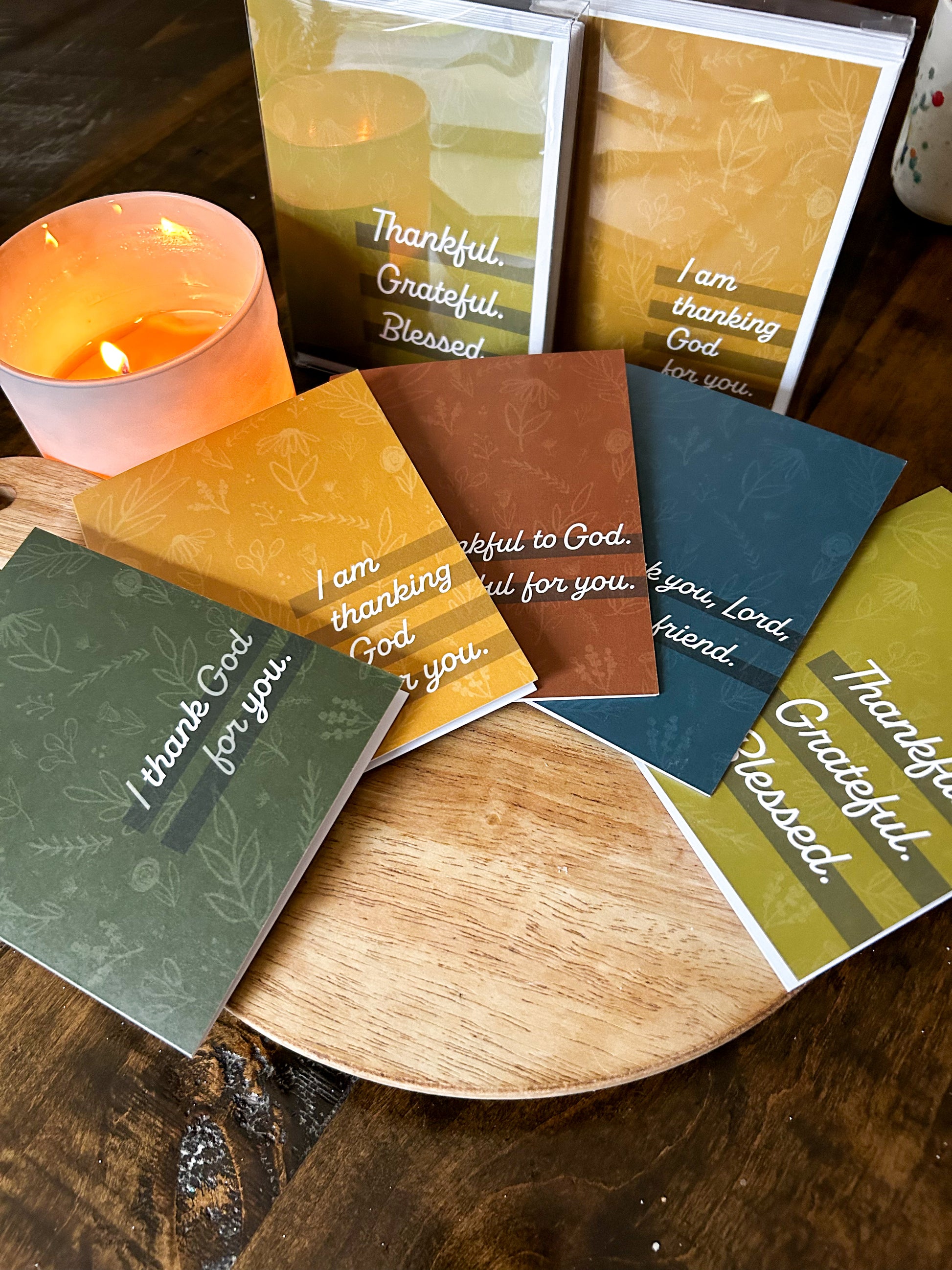 The idea for these cards came from reading Practicing Affirmation by Sam Crabtree: “In the Scriptures, (Paul) didn’t thank people for things; he thanked God for people. Paul’s practice is, “I thank God for you.” Yes, the person is refreshed by the expression of gratitude, but God gets the glory. We are wise to give God-centered thank-yous and God-centered affirmations.” p. 18