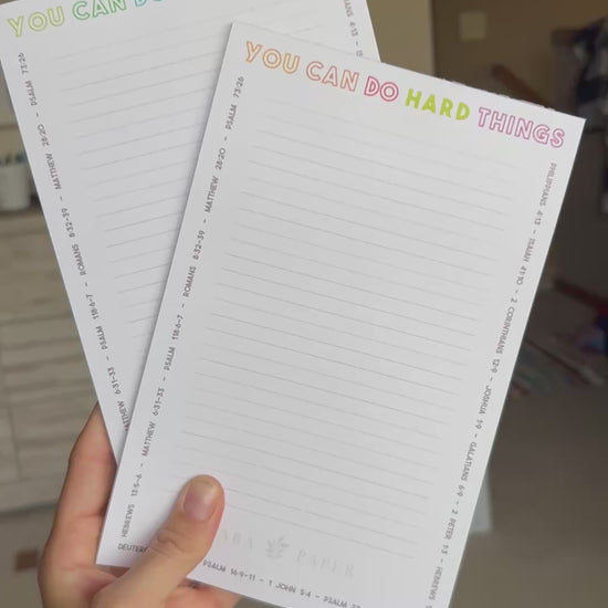 This 5.5x8.5 inch pad includes 25 lined pages with a border of verses that remind us of how God is for us, with us, and giving us grace and strength for each day.
