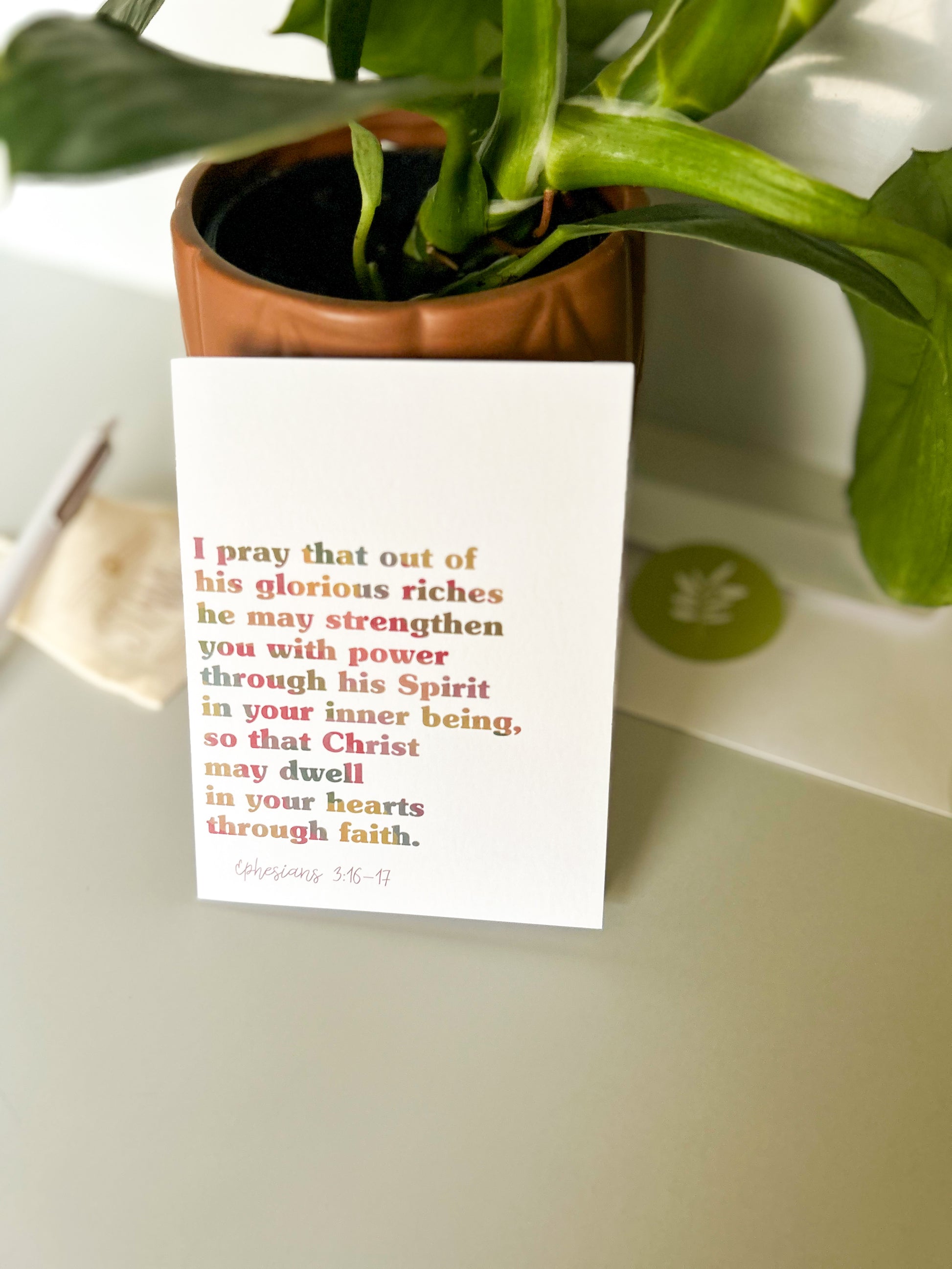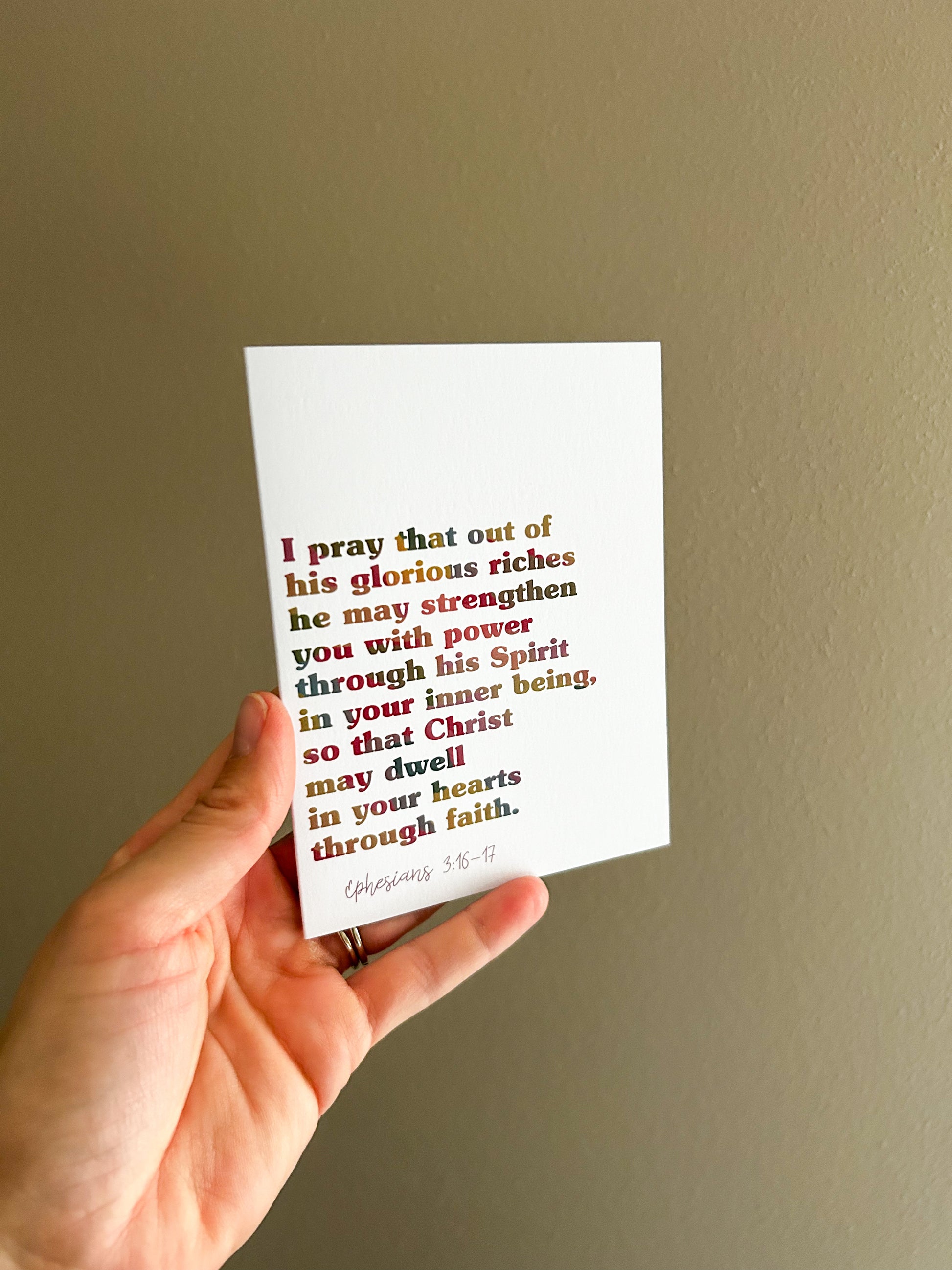 I pray that out of his glorious riches he may strengthen you with power through his Spirit in your inner being, so that Christ may dwell in your hearts through faith.