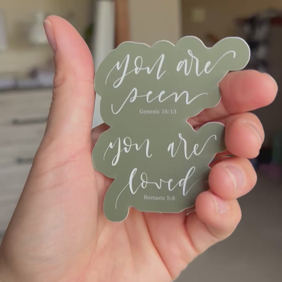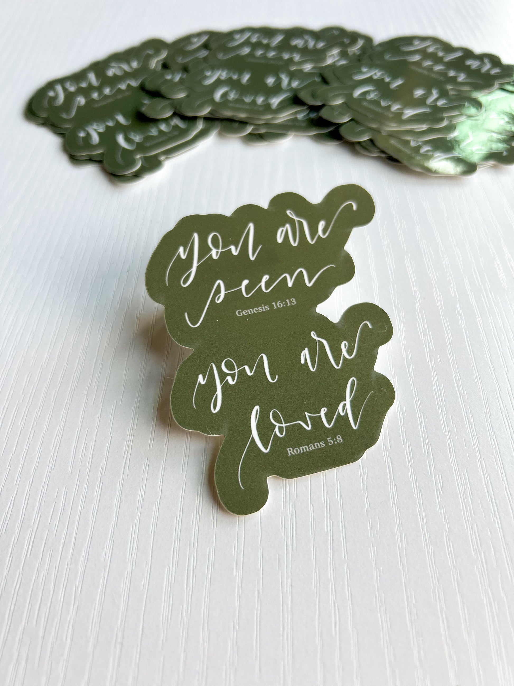 Now you can carry around the truth that You are seen (Genesis 16:13) and you are loved (Romans 5:8) on your computer, your water bottle, your journals, or wherever!
