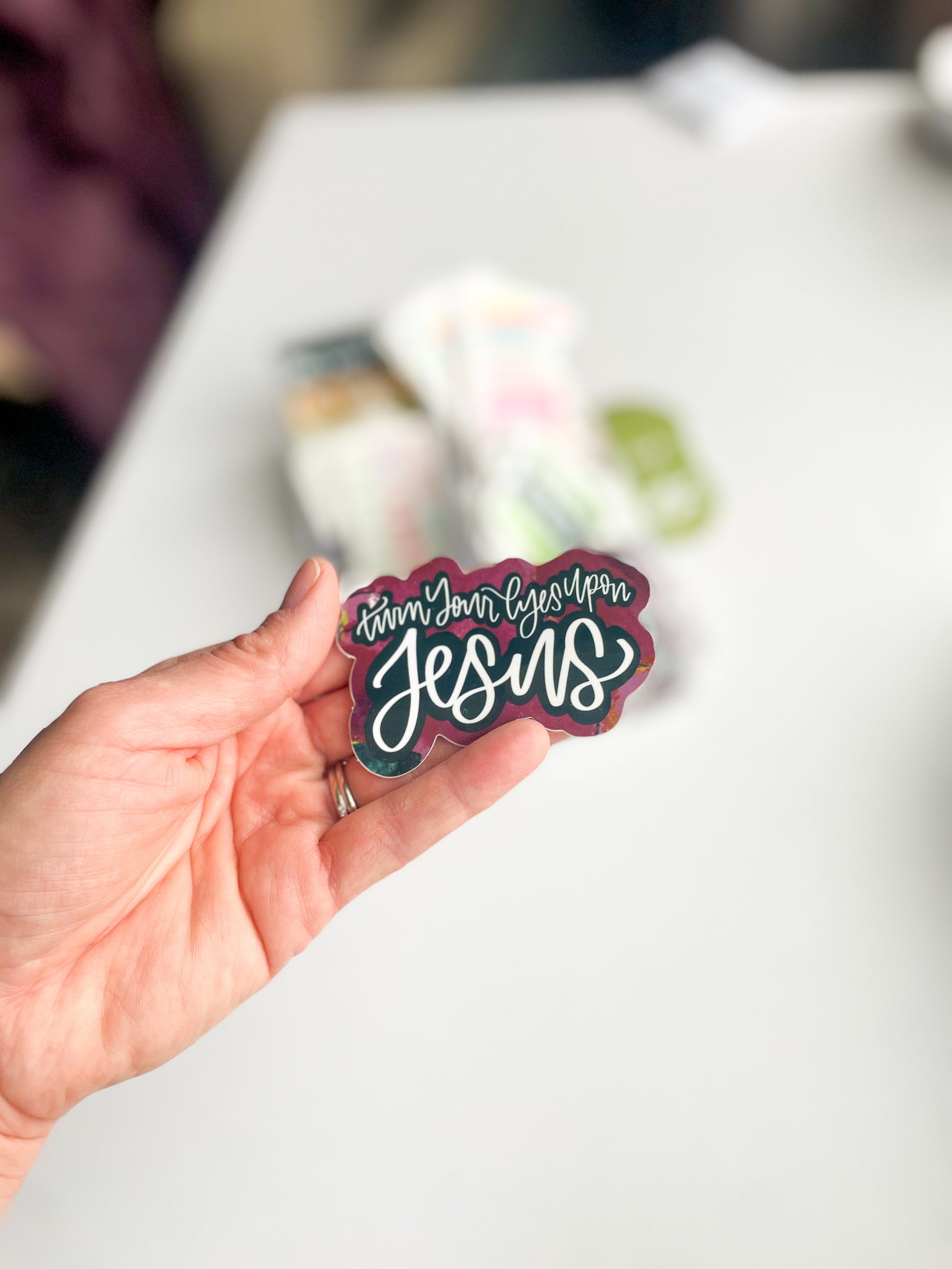 Carry around the reminder to Turn Your Eyes Upon Jesus on your computer, your water bottle, your journals, or wherever!