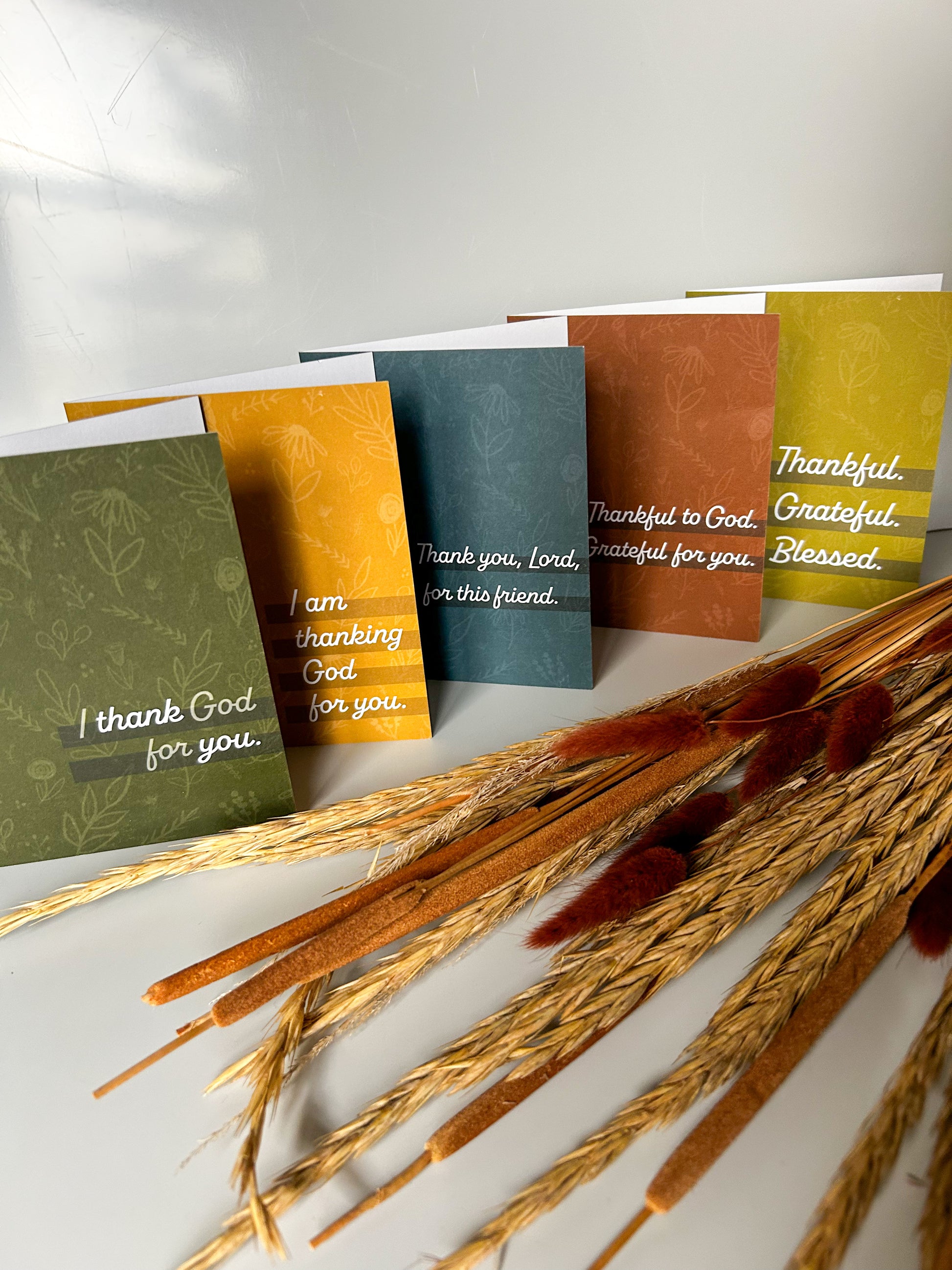 Thank you cards that express gratitude to your people and give God the glory. Each pack comes with 10 cards, two of each variety.