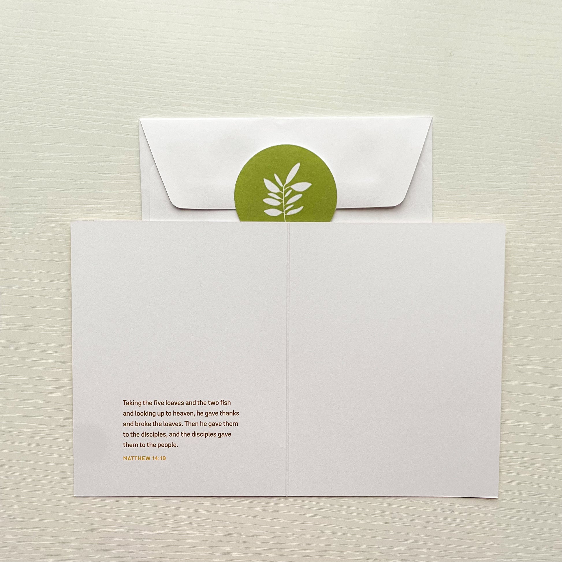 Taking the five loaves and the two fish and looking up to heaven, he gave thanks and broke the loaves. Then he gave them to the disciples, and the disciples gave them to the people.Taking the five loaves and the two fish and looking up to heaven, he gave thanks and broke the loaves. Then he gave them to the disciples, and the disciples gave them to the people.